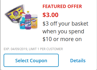 - Also, some of us received a special digital coupon for $3 off your basket when you spend $10 in cleaning supplies. NOTE: You definitely won't have gotten this Q unless you signed up for promotional notifications from the HEB app!